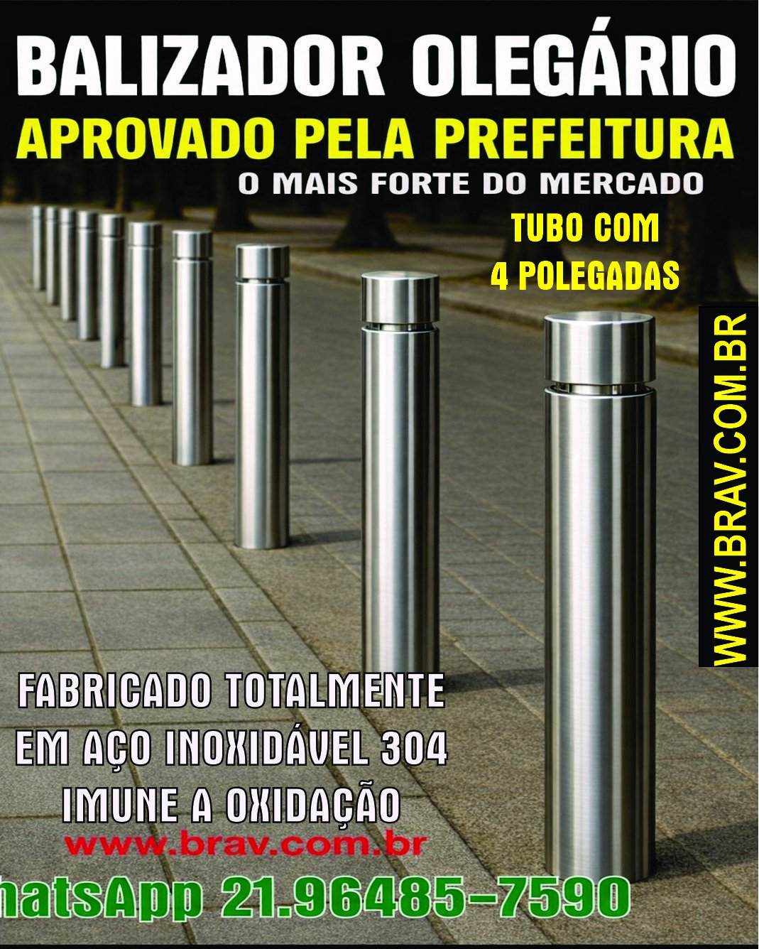 Observação importante: balizadores removíveis, com argolas para correntes e com diâmetro menor que 3 ½¨ polegadas não são permitidos pela Prefeitura, fiquem atentos para evitar pesados prejuízos.